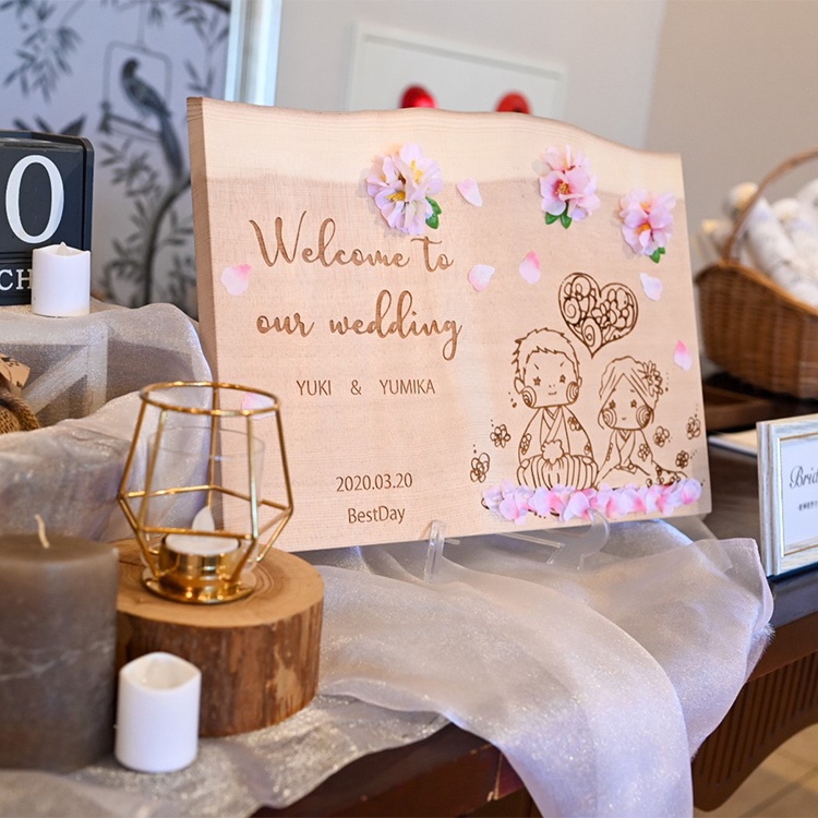 ウェルカムボードとは、結婚式や披露宴の入り口、受付などに設置し、新郎新婦に代わってゲストを迎える役目があります。
