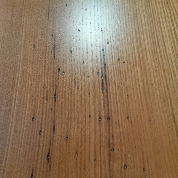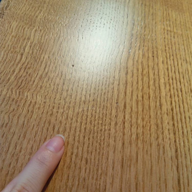 樹脂膜が水や汚れから木を保護してくれますので、日頃のお手入れは乾拭きや水拭きのみで済み、非常に楽にお使いいただける点が特徴です。特に飲食が主な用途になるダイニングテーブルでは、その効果を特に発揮します。