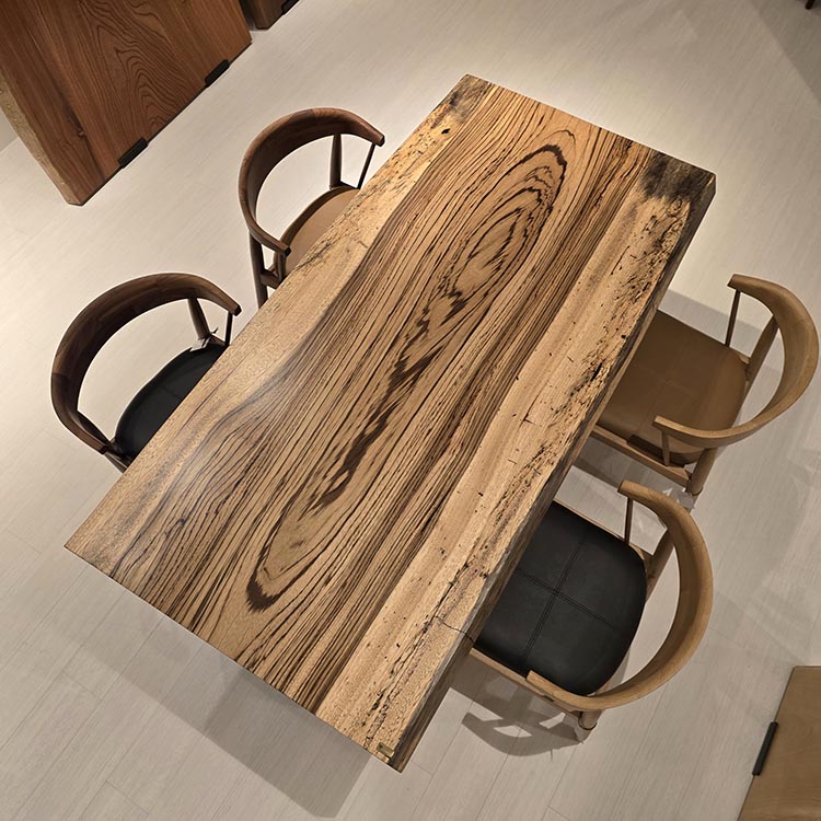 木には人と同じように個性があります。樹種や産地、樹齢はもちろん、同じ丸太から製材した一枚板でも同じものはひとつとしてありません。同じ名前の木でも色の明るいもの、暗いもの、節があるもの、傷があるものなど様々です。それは木が長い年月を過ごしてきた証であり、木が持つ個性です。だからこそ一枚板は‘世界にひとつのモノ’になるのです。