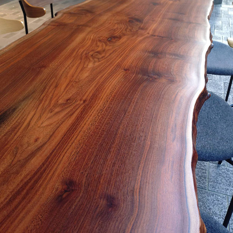 木には人と同じように個性があります。樹種や産地、樹齢はもちろん、同じ丸太から製材した一枚板でも同じものはひとつとしてありません。同じ名前の木でも色の明るいもの、暗いもの、節があるもの、傷があるものなど様々です。それは木が長い年月を過ごしてきた証であり、木が持つ個性です。だからこそ一枚板は‘世界にひとつのモノ’になるのです。