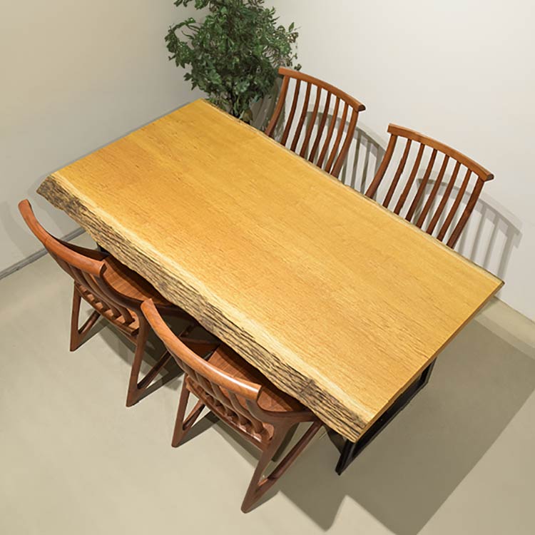 木には人と同じように個性があります。樹種や産地、樹齢はもちろん、同じ丸太から製材した一枚板でも同じものはひとつとしてありません。同じ名前の木でも色の明るいもの、暗いもの、節があるもの、傷があるものなど様々です。それは木が長い年月を過ごしてきた証であり、木が持つ個性です。だからこそ一枚板は‘世界にひとつのモノ’になるのです。