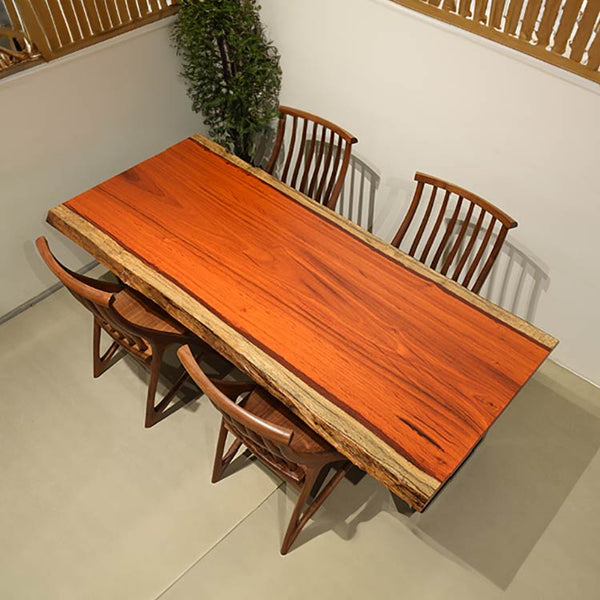 木には人と同じように個性があります。樹種や産地、樹齢はもちろん、同じ丸太から製材した一枚板でも同じものはひとつとしてありません。同じ名前の木でも色の明るいもの、暗いもの、節があるもの、傷があるものなど様々です。それは木が長い年月を過ごしてきた証であり、木が持つ個性です。だからこそ一枚板は‘世界にひとつのモノ’になるのです。