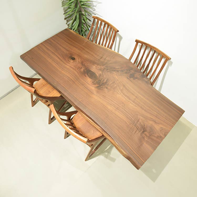 木には人と同じように個性があります。樹種や産地、樹齢はもちろん、同じ丸太から製材した一枚板でも同じものはひとつとしてありません。同じ名前の木でも色の明るいもの、暗いもの、節があるもの、傷があるものなど様々です。それは木が長い年月を過ごしてきた証であり、木が持つ個性です。だからこそ一枚板は‘世界にひとつのモノ’になるのです。