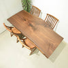 樹脂膜が水や汚れから木を保護してくれますので、日頃のお手入れは乾拭きや水拭きのみで済み、非常に楽にお使いいただける点が特徴です。特に飲食が主な用途になるダイニングテーブルでは、その効果を特に発揮します。