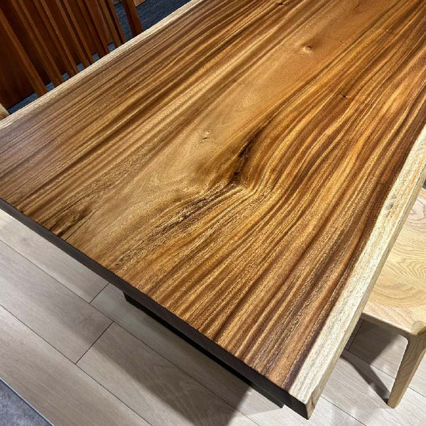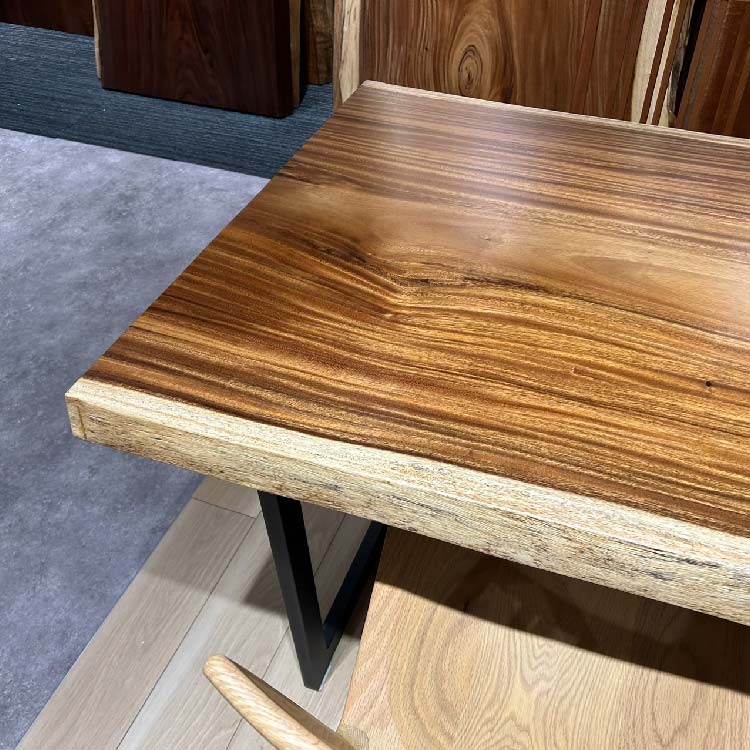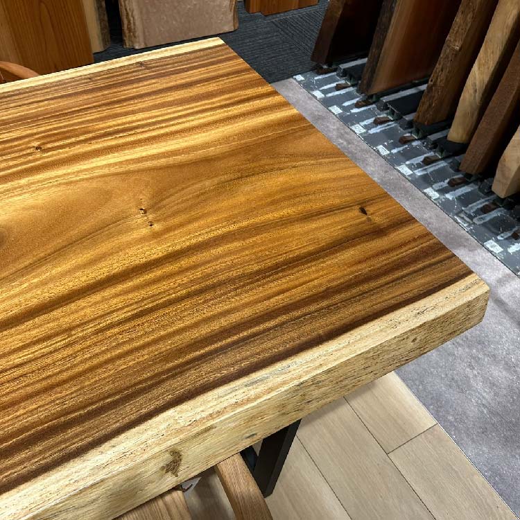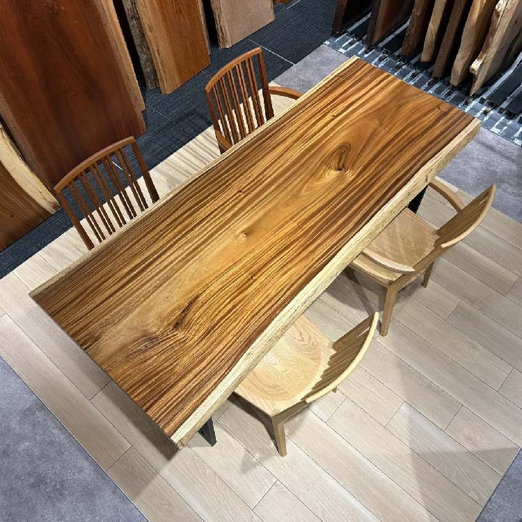 木には人と同じように個性があります。樹種や産地、樹齢はもちろん、同じ丸太から製材した一枚板でも同じものはひとつとしてありません。同じ名前の木でも色の明るいもの、暗いもの、節があるもの、傷があるものなど様々です。それは木が長い年月を過ごしてきた証であり、木が持つ個性です。だからこそ一枚板は‘世界にひとつのモノ’になるのです。
