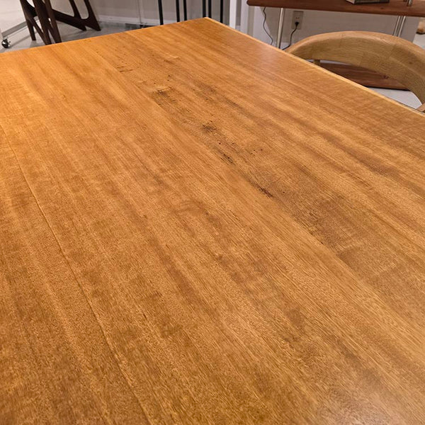 アトリエ木馬ではオイル塗装・ウレタン塗装のどちらでも磨き直し・再塗装を行っています。職人の手で塗装を一度剥ぎ、天板の研磨・補修を行います。表面を削ることで新しい木目や表情とも出会えます。