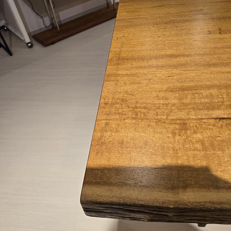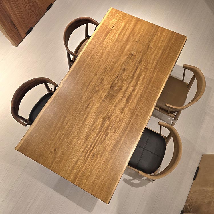 木には人と同じように個性があります。樹種や産地、樹齢はもちろん、同じ丸太から製材した一枚板でも同じものはひとつとしてありません。同じ名前の木でも色の明るいもの、暗いもの、節があるもの、傷があるものなど様々です。それは木が長い年月を過ごしてきた証であり、木が持つ個性です。だからこそ一枚板は‘世界にひとつのモノ’になるのです。
