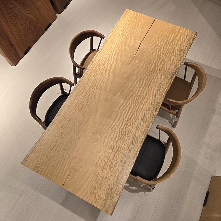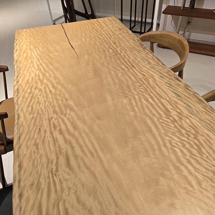 木には人と同じように個性があります。樹種や産地、樹齢はもちろん、同じ丸太から製材した一枚板でも同じものはひとつとしてありません。同じ名前の木でも色の明るいもの、暗いもの、節があるもの、傷があるものなど様々です。それは木が長い年月を過ごしてきた証であり、木が持つ個性です。だからこそ一枚板は‘世界にひとつのモノ’になるのです。