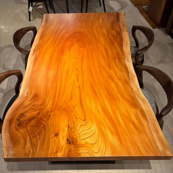 木には人と同じように個性があります。樹種や産地、樹齢はもちろん、同じ丸太から製材した一枚板でも同じものはひとつとしてありません。同じ名前の木でも色の明るいもの、暗いもの、節があるもの、傷があるものなど様々です。それは木が長い年月を過ごしてきた証であり、木が持つ個性です。だからこそ一枚板は‘世界にひとつのモノ’になるのです。