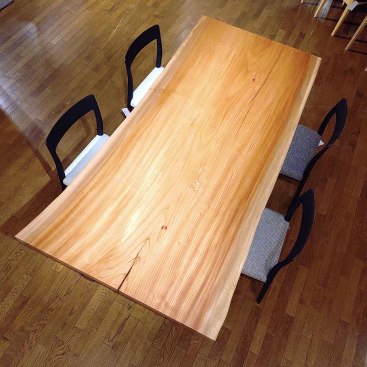 木には人と同じように個性があります。樹種や産地、樹齢はもちろん、同じ丸太から製材した一枚板でも同じものはひとつとしてありません。同じ名前の木でも色の明るいもの、暗いもの、節があるもの、傷があるものなど様々です。それは木が長い年月を過ごしてきた証であり、木が持つ個性です。だからこそ一枚板は‘世界にひとつのモノ’になるのです。