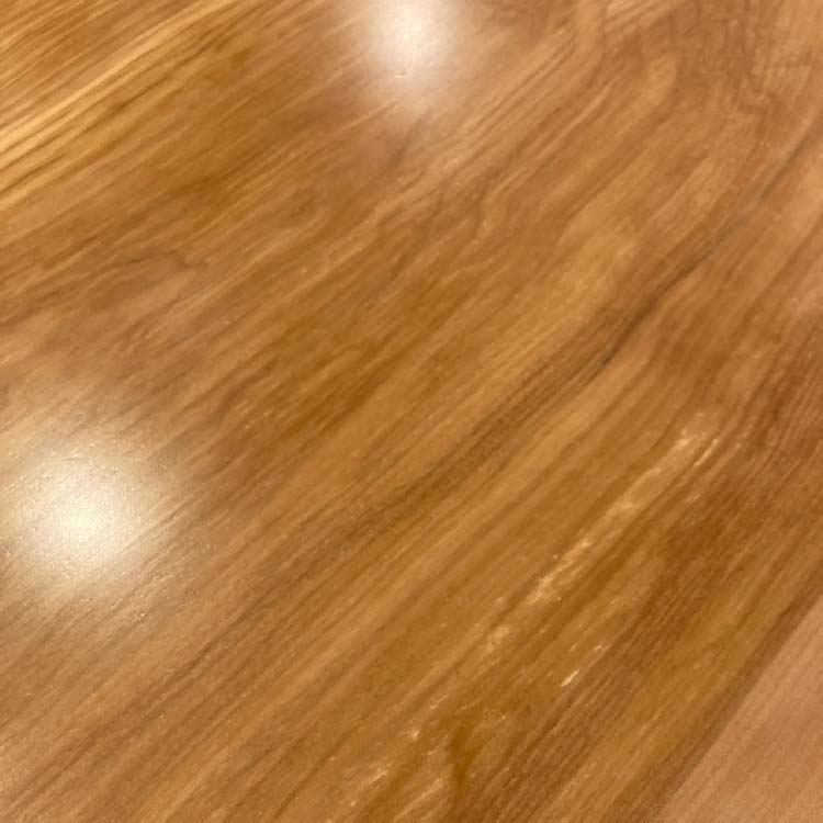 樹脂膜が水や汚れから木を保護してくれますので、日頃のお手入れは乾拭きや水拭きのみで済み、非常に楽にお使いいただける点が特徴です。特に飲食が主な用途になるダイニングテーブルでは、その効果を特に発揮します。