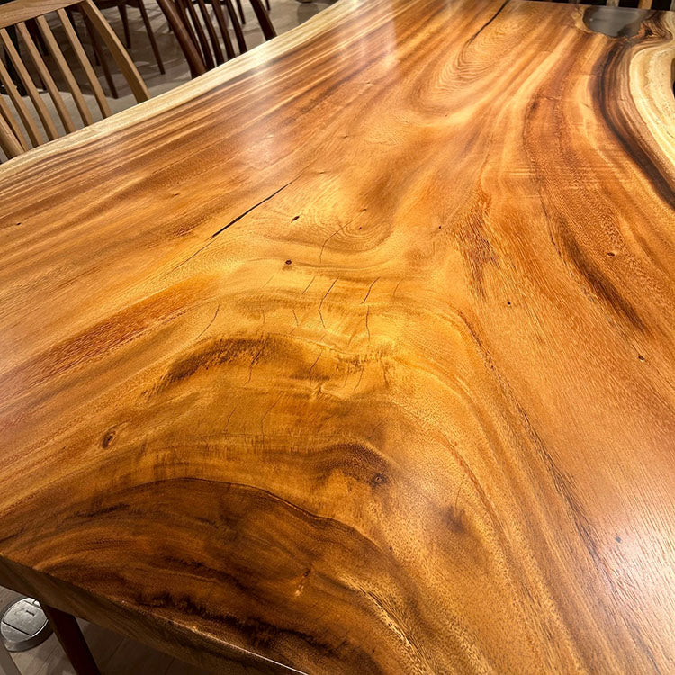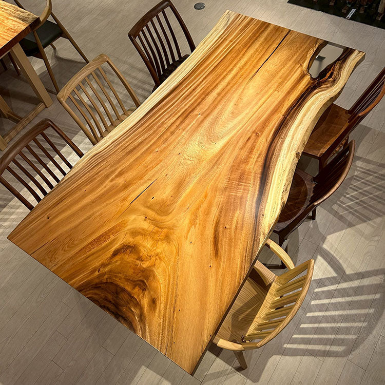 木には人と同じように個性があります。樹種や産地、樹齢はもちろん、同じ丸太から製材した一枚板でも同じものはひとつとしてありません。同じ名前の木でも色の明るいもの、暗いもの、節があるもの、傷があるものなど様々です。それは木が長い年月を過ごしてきた証であり、木が持つ個性です。だからこそ一枚板は‘世界にひとつのモノ’になるのです。