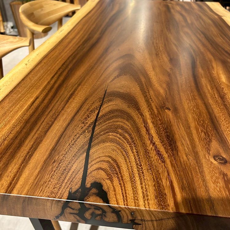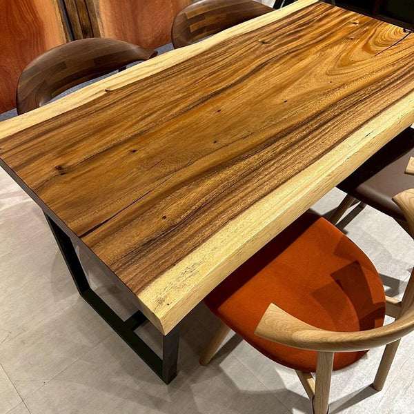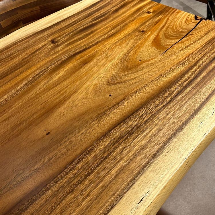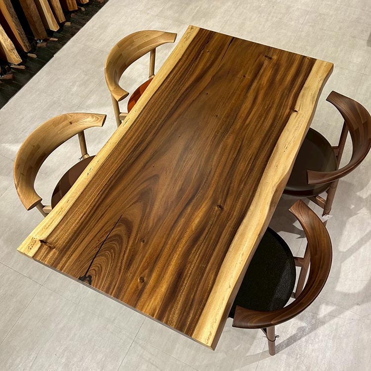 木には人と同じように個性があります。樹種や産地、樹齢はもちろん、同じ丸太から製材した一枚板でも同じものはひとつとしてありません。同じ名前の木でも色の明るいもの、暗いもの、節があるもの、傷があるものなど様々です。それは木が長い年月を過ごしてきた証であり、木が持つ個性です。だからこそ一枚板は‘世界にひとつのモノ’になるのです。