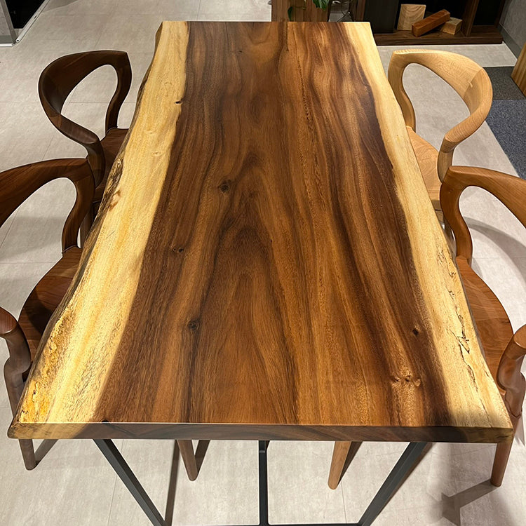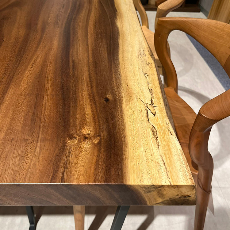 木には人と同じように個性があります。樹種や産地、樹齢はもちろん、同じ丸太から製材した一枚板でも同じものはひとつとしてありません。同じ名前の木でも色の明るいもの、暗いもの、節があるもの、傷があるものなど様々です。それは木が長い年月を過ごしてきた証であり、木が持つ個性です。だからこそ一枚板は‘世界にひとつのモノ’になるのです。
