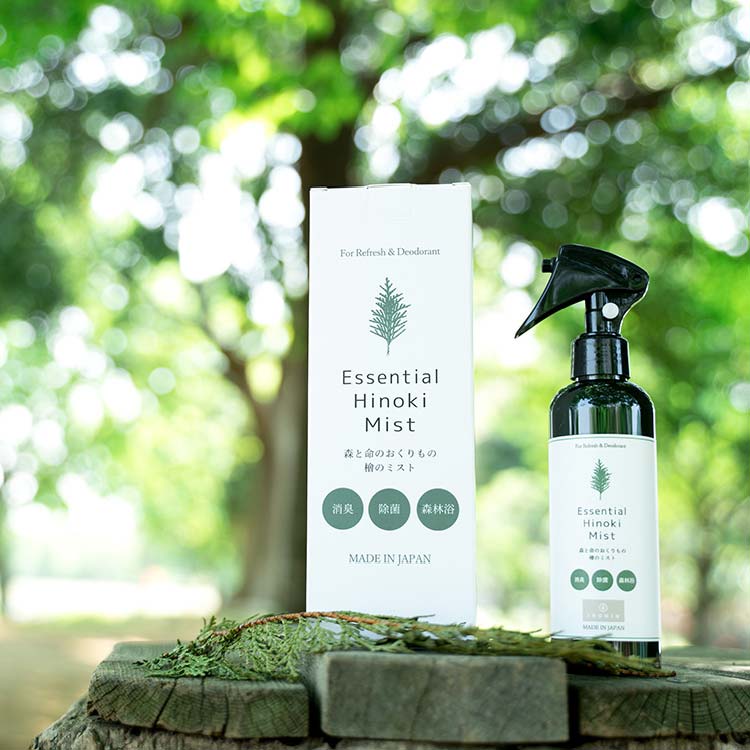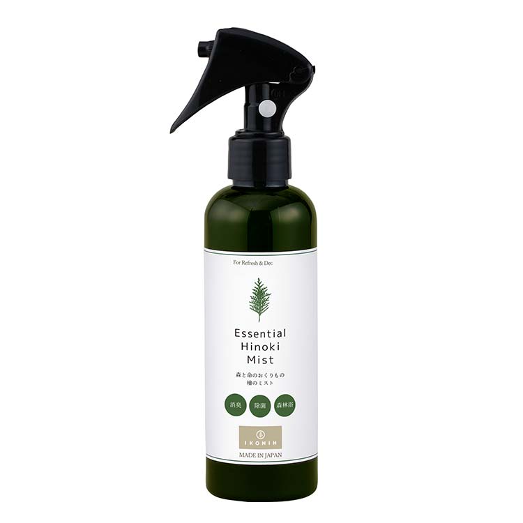 | 商品情報 | ひのきには「消臭・芳香」、「抗菌」、「抗ウイルス」、「防虫」、「リラックス効果」などの効果があります。ひのきの生み出す恵みをぎゅっと凝縮した精油から作られたミストです。 |
