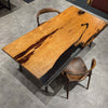 樹脂膜が水や汚れから木を保護してくれますので、日頃のお手入れは乾拭きや水拭きのみで済み、非常に楽にお使いいただける点が特徴です。特に飲食が主な用途になるダイニングテーブルでは、その効果を特に発揮します。