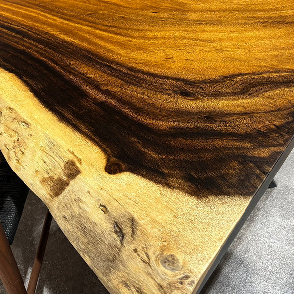 木には人と同じように個性があります。樹種や産地、樹齢はもちろん、同じ丸太から製材した一枚板でも同じものはひとつとしてありません。同じ名前の木でも色の明るいもの、暗いもの、節があるもの、傷があるものなど様々です。それは木が長い年月を過ごしてきた証であり、木が持つ個性です。だからこそ一枚板は‘世界にひとつのモノ’になるのです。