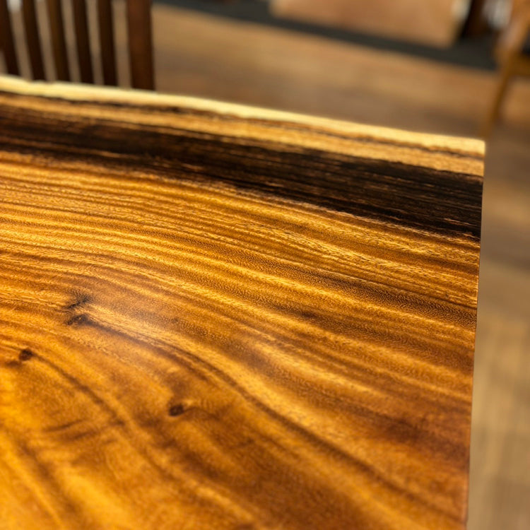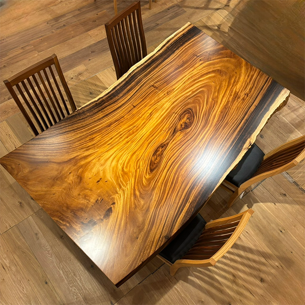 木には人と同じように個性があります。樹種や産地、樹齢はもちろん、同じ丸太から製材した一枚板でも同じものはひとつとしてありません。同じ名前の木でも色の明るいもの、暗いもの、節があるもの、傷があるものなど様々です。それは木が長い年月を過ごしてきた証であり、木が持つ個性です。だからこそ一枚板は‘世界にひとつのモノ’になるのです。