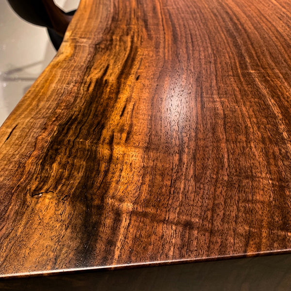 木には人と同じように個性があります。樹種や産地、樹齢はもちろん、同じ丸太から製材した一枚板でも同じものはひとつとしてありません。同じ名前の木でも色の明るいもの、暗いもの、節があるもの、傷があるものなど様々です。それは木が長い年月を過ごしてきた証であり、木が持つ個性です。だからこそ一枚板は‘世界にひとつのモノ’になるのです。