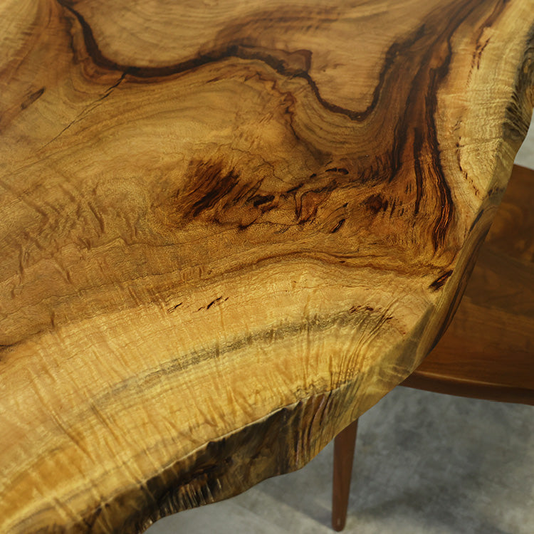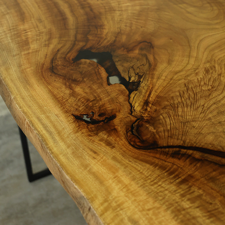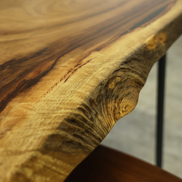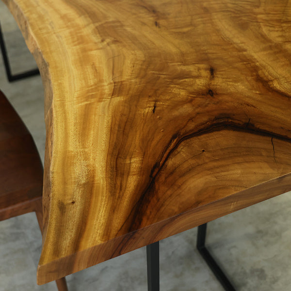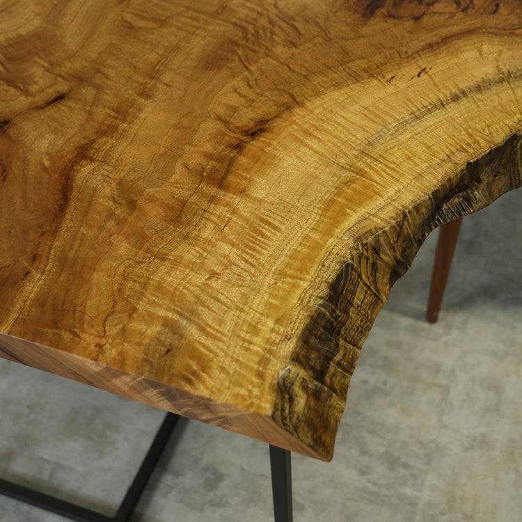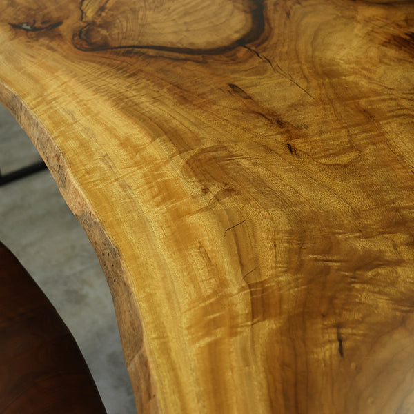 木には人と同じように個性があります。樹種や産地、樹齢はもちろん、同じ丸太から製材した一枚板でも同じものはひとつとしてありません。同じ名前の木でも色の明るいもの、暗いもの、節があるもの、傷があるものなど様々です。それは木が長い年月を過ごしてきた証であり、木が持つ個性です。だからこそ一枚板は‘世界にひとつのモノ’になるのです。