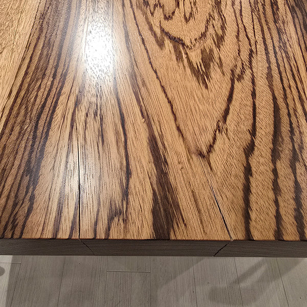 樹脂膜が水や汚れから木を保護してくれますので、日頃のお手入れは乾拭きや水拭きのみで済み、非常に楽にお使いいただける点が特徴です。特に飲食が主な用途になるダイニングテーブルでは、その効果を特に発揮します。