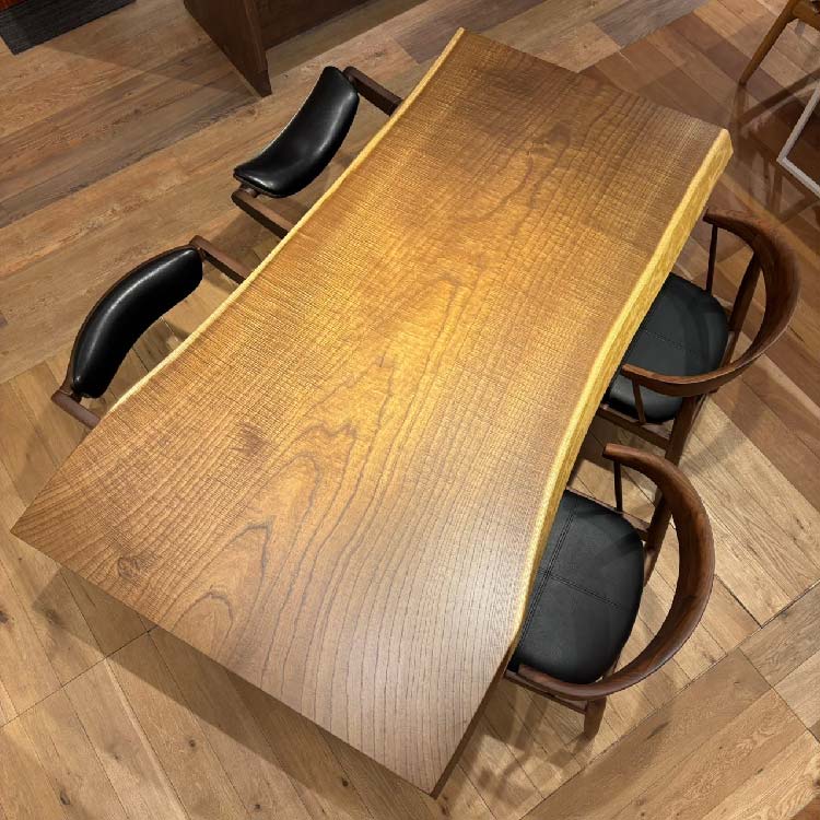 木には人と同じように個性があります。樹種や産地、樹齢はもちろん、同じ丸太から製材した一枚板でも同じものはひとつとしてありません。同じ名前の木でも色の明るいもの、暗いもの、節があるもの、傷があるものなど様々です。それは木が長い年月を過ごしてきた証であり、木が持つ個性です。だからこそ一枚板は‘世界にひとつのモノ’になるのです。