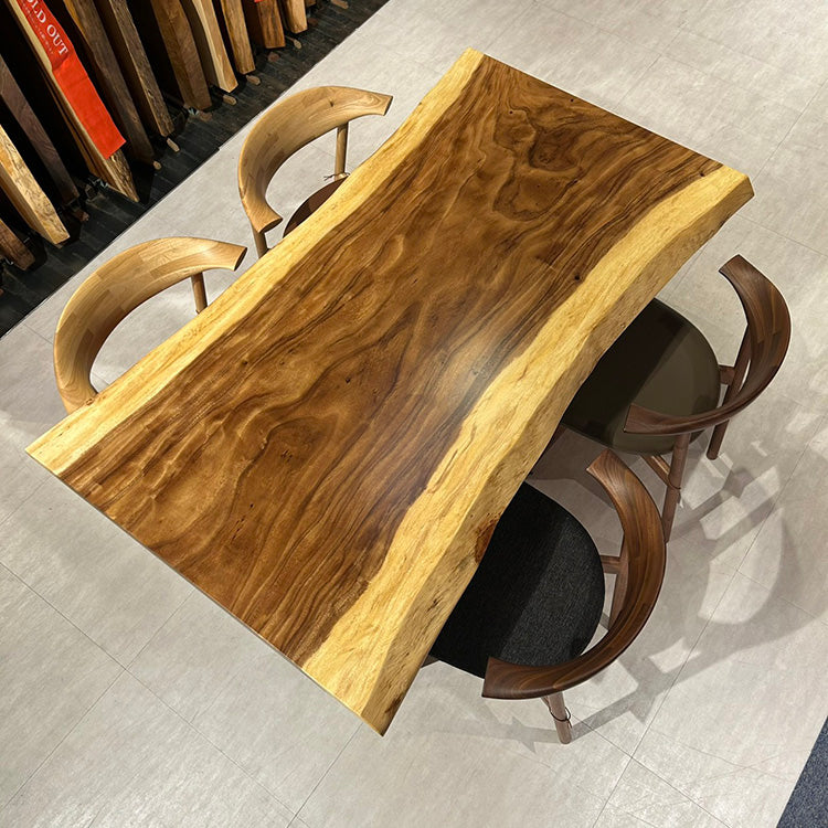 木には人と同じように個性があります。樹種や産地、樹齢はもちろん、同じ丸太から製材した一枚板でも同じものはひとつとしてありません。同じ名前の木でも色の明るいもの、暗いもの、節があるもの、傷があるものなど様々です。それは木が長い年月を過ごしてきた証であり、木が持つ個性です。だからこそ一枚板は‘世界にひとつのモノ’になるのです。