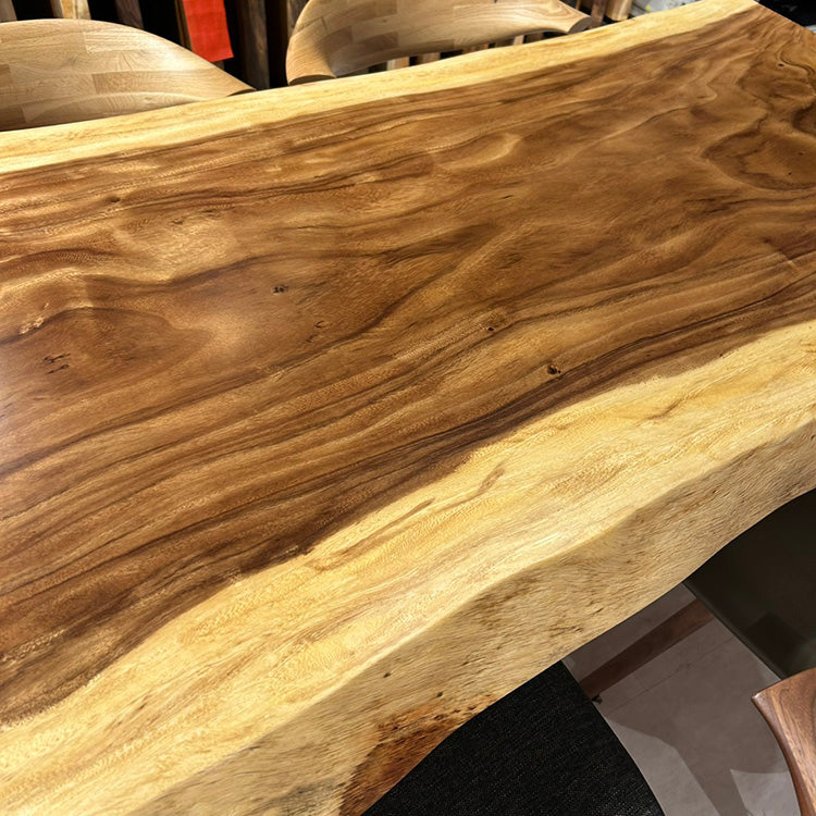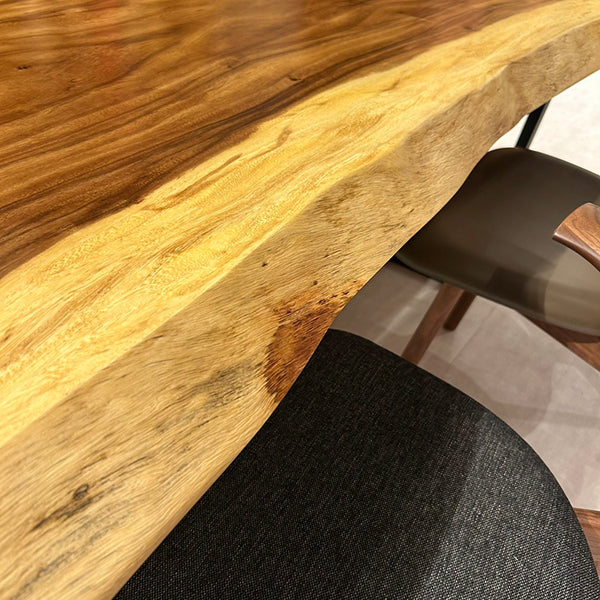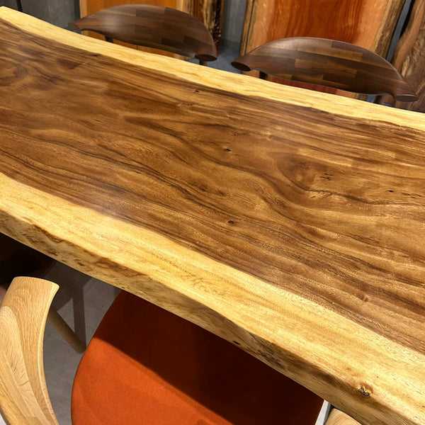 木には人と同じように個性があります。樹種や産地、樹齢はもちろん、同じ丸太から製材した一枚板でも同じものはひとつとしてありません。同じ名前の木でも色の明るいもの、暗いもの、節があるもの、傷があるものなど様々です。それは木が長い年月を過ごしてきた証であり、木が持つ個性です。だからこそ一枚板は‘世界にひとつのモノ’になるのです。
