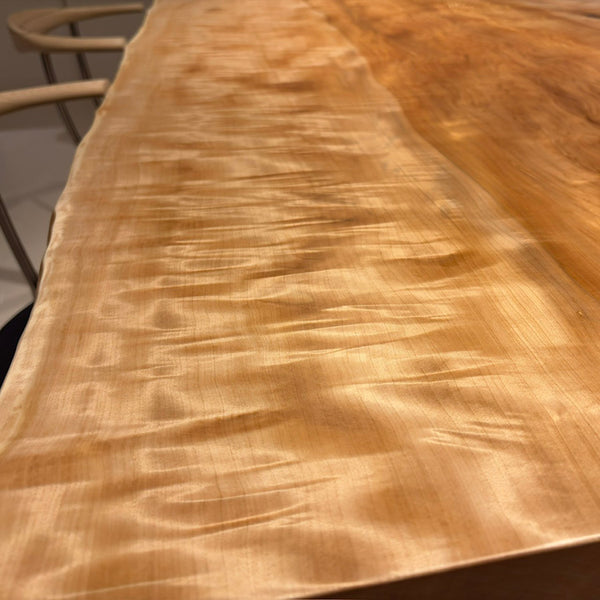 木には人と同じように個性があります。樹種や産地、樹齢はもちろん、同じ丸太から製材した一枚板でも同じものはひとつとしてありません。同じ名前の木でも色の明るいもの、暗いもの、節があるもの、傷があるものなど様々です。それは木が長い年月を過ごしてきた証であり、木が持つ個性です。だからこそ一枚板は‘世界にひとつのモノ’になるのです。