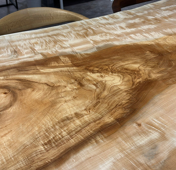 木には人と同じように個性があります。樹種や産地、樹齢はもちろん、同じ丸太から製材した一枚板でも同じものはひとつとしてありません。同じ名前の木でも色の明るいもの、暗いもの、節があるもの、傷があるものなど様々です。それは木が長い年月を過ごしてきた証であり、木が持つ個性です。だからこそ一枚板は‘世界にひとつのモノ’になるのです。