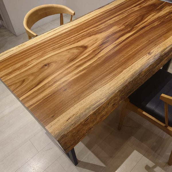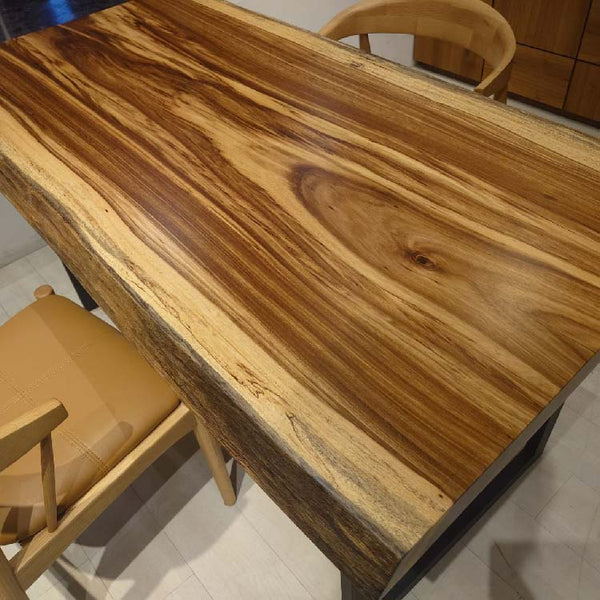 木には人と同じように個性があります。樹種や産地、樹齢はもちろん、同じ丸太から製材した一枚板でも同じものはひとつとしてありません。同じ名前の木でも色の明るいもの、暗いもの、節があるもの、傷があるものなど様々です。それは木が長い年月を過ごしてきた証であり、木が持つ個性です。だからこそ一枚板は‘世界にひとつのモノ’になるのです。