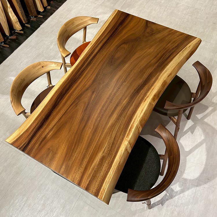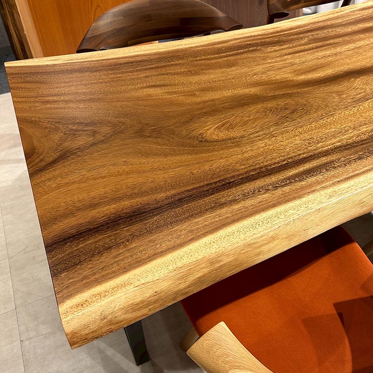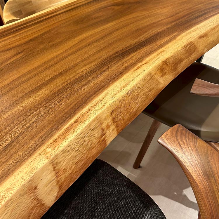 木には人と同じように個性があります。樹種や産地、樹齢はもちろん、同じ丸太から製材した一枚板でも同じものはひとつとしてありません。同じ名前の木でも色の明るいもの、暗いもの、節があるもの、傷があるものなど様々です。それは木が長い年月を過ごしてきた証であり、木が持つ個性です。だからこそ一枚板は‘世界にひとつのモノ’になるのです。