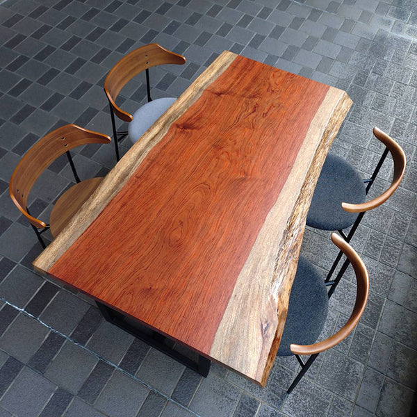 木には人と同じように個性があります。樹種や産地、樹齢はもちろん、同じ丸太から製材した一枚板でも同じものはひとつとしてありません。同じ名前の木でも色の明るいもの、暗いもの、節があるもの、傷があるものなど様々です。それは木が長い年月を過ごしてきた証であり、木が持つ個性です。だからこそ一枚板は‘世界にひとつのモノ’になるのです。