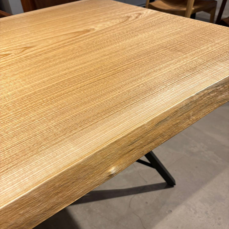 樹脂膜が水や汚れから木を保護してくれますので、日頃のお手入れは乾拭きや水拭きのみで済み、非常に楽にお使いいただける点が特徴です。特に飲食が主な用途になるダイニングテーブルでは、その効果を特に発揮します。