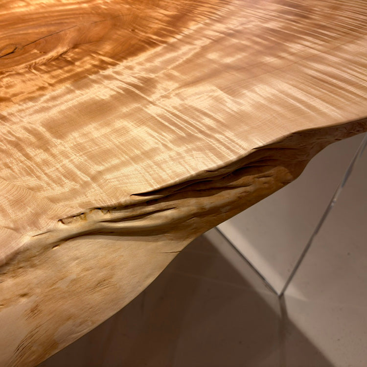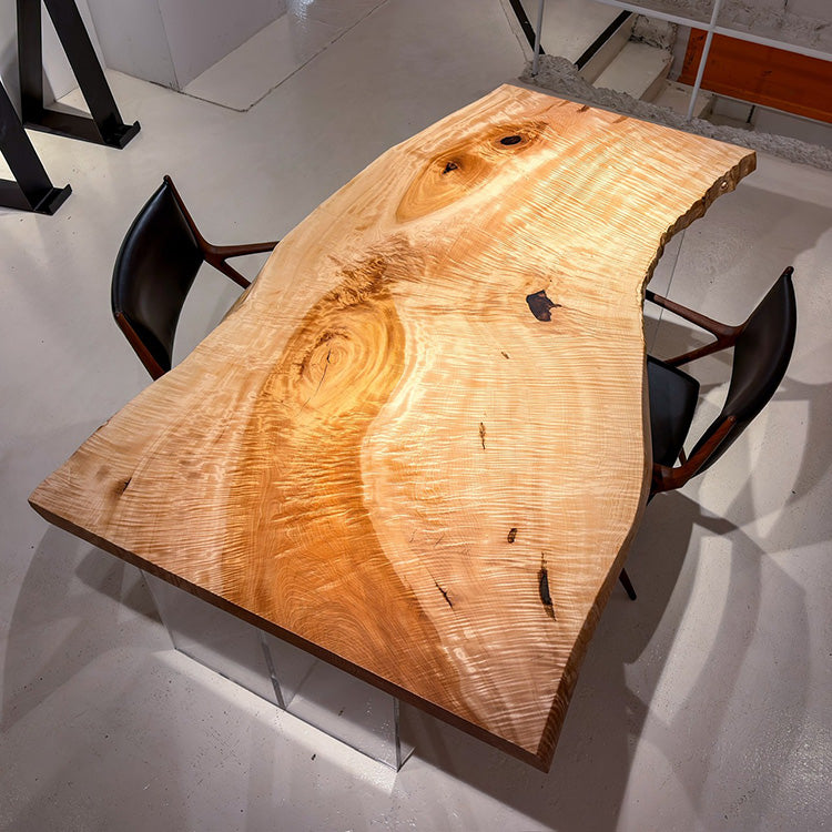 木には人と同じように個性があります。樹種や産地、樹齢はもちろん、同じ丸太から製材した一枚板でも同じものはひとつとしてありません。同じ名前の木でも色の明るいもの、暗いもの、節があるもの、傷があるものなど様々です。それは木が長い年月を過ごしてきた証であり、木が持つ個性です。だからこそ一枚板は‘世界にひとつのモノ’になるのです。
