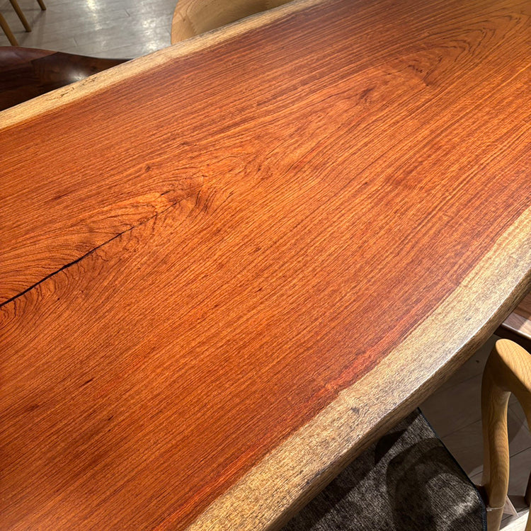 木には人と同じように個性があります。樹種や産地、樹齢はもちろん、同じ丸太から製材した一枚板でも同じものはひとつとしてありません。同じ名前の木でも色の明るいもの、暗いもの、節があるもの、傷があるものなど様々です。それは木が長い年月を過ごしてきた証であり、木が持つ個性です。だからこそ一枚板は‘世界にひとつのモノ’になるのです。