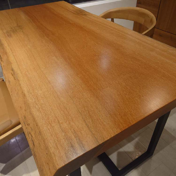 樹脂膜が水や汚れから木を保護してくれますので、日頃のお手入れは乾拭きや水拭きのみで済み、非常に楽にお使いいただける点が特徴です。特に飲食が主な用途になるダイニングテーブルでは、その効果を特に発揮します。