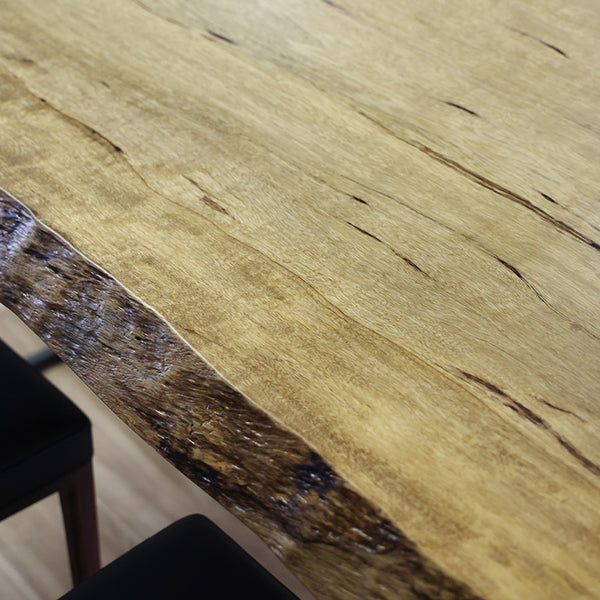 木には人と同じように個性があります。樹種や産地、樹齢はもちろん、同じ丸太から製材した一枚板でも同じものはひとつとしてありません。同じ名前の木でも色の明るいもの、暗いもの、節があるもの、傷があるものなど様々です。それは木が長い年月を過ごしてきた証であり、木が持つ個性です。だからこそ一枚板は‘世界にひとつのモノ’になるのです。
