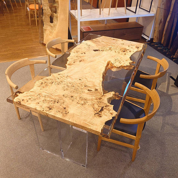 木には人と同じように個性があります。樹種や産地、樹齢はもちろん、同じ丸太から製材した一枚板でも同じものはひとつとしてありません。同じ名前の木でも色の明るいもの、暗いもの、節があるもの、傷があるものなど様々です。それは木が長い年月を過ごしてきた証であり、木が持つ個性です。だからこそ一枚板は‘世界にひとつのモノ’になるのです。