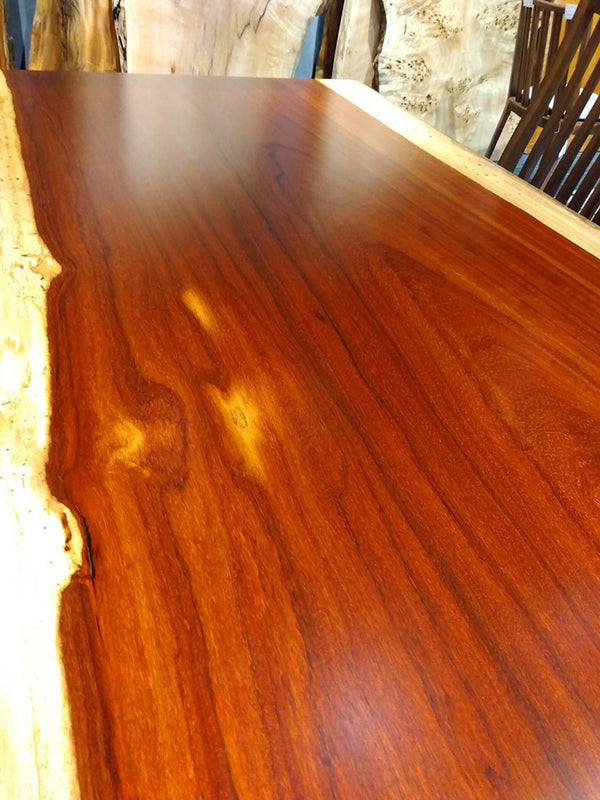 木には人と同じように個性があります。樹種や産地、樹齢はもちろん、同じ丸太から製材した一枚板でも同じものはひとつとしてありません。同じ名前の木でも色の明るいもの、暗いもの、節があるもの、傷があるものなど様々です。それは木が長い年月を過ごしてきた証であり、木が持つ個性です。だからこそ一枚板は‘世界にひとつのモノ’になるのです。