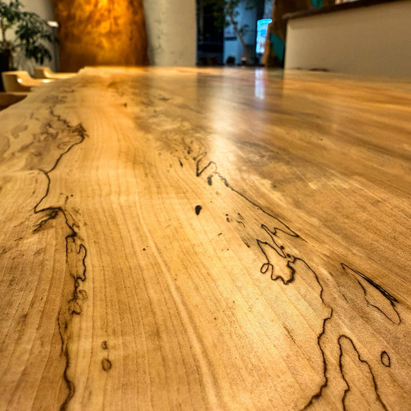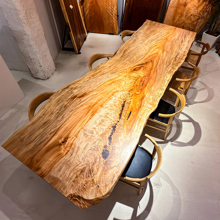 木には人と同じように個性があります。樹種や産地、樹齢はもちろん、同じ丸太から製材した一枚板でも同じものはひとつとしてありません。同じ名前の木でも色の明るいもの、暗いもの、節があるもの、傷があるものなど様々です。それは木が長い年月を過ごしてきた証であり、木が持つ個性です。だからこそ一枚板は‘世界にひとつのモノ’になるのです。