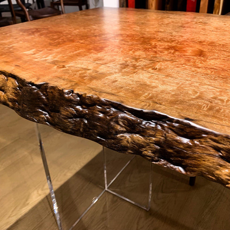 木には人と同じように個性があります。樹種や産地、樹齢はもちろん、同じ丸太から製材した一枚板でも同じものはひとつとしてありません。同じ名前の木でも色の明るいもの、暗いもの、節があるもの、傷があるものなど様々です。それは木が長い年月を過ごしてきた証であり、木が持つ個性です。だからこそ一枚板は‘世界にひとつのモノ’になるのです。
