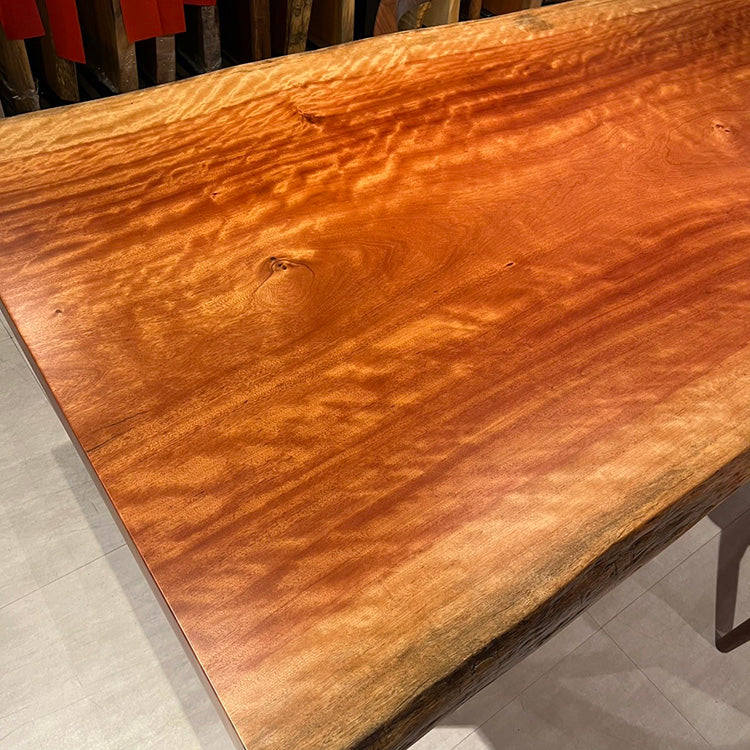 木には人と同じように個性があります。樹種や産地、樹齢はもちろん、同じ丸太から製材した一枚板でも同じものはひとつとしてありません。同じ名前の木でも色の明るいもの、暗いもの、節があるもの、傷があるものなど様々です。それは木が長い年月を過ごしてきた証であり、木が持つ個性です。だからこそ一枚板は‘世界にひとつのモノ’になるのです。