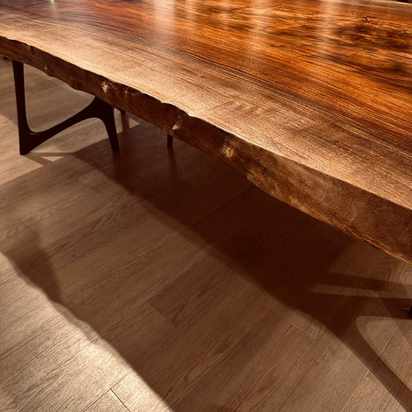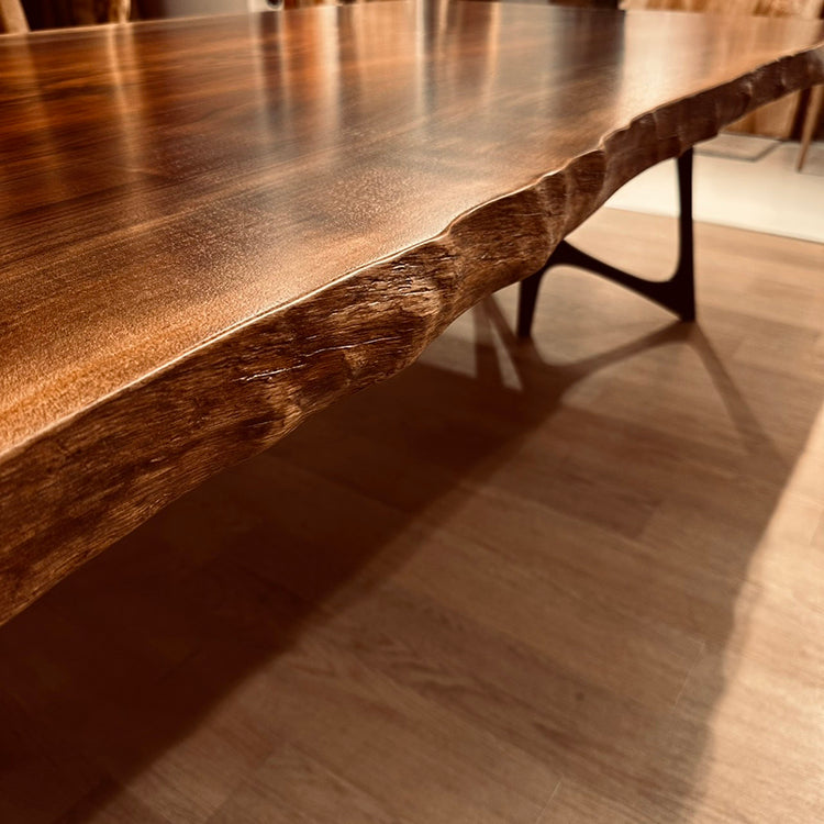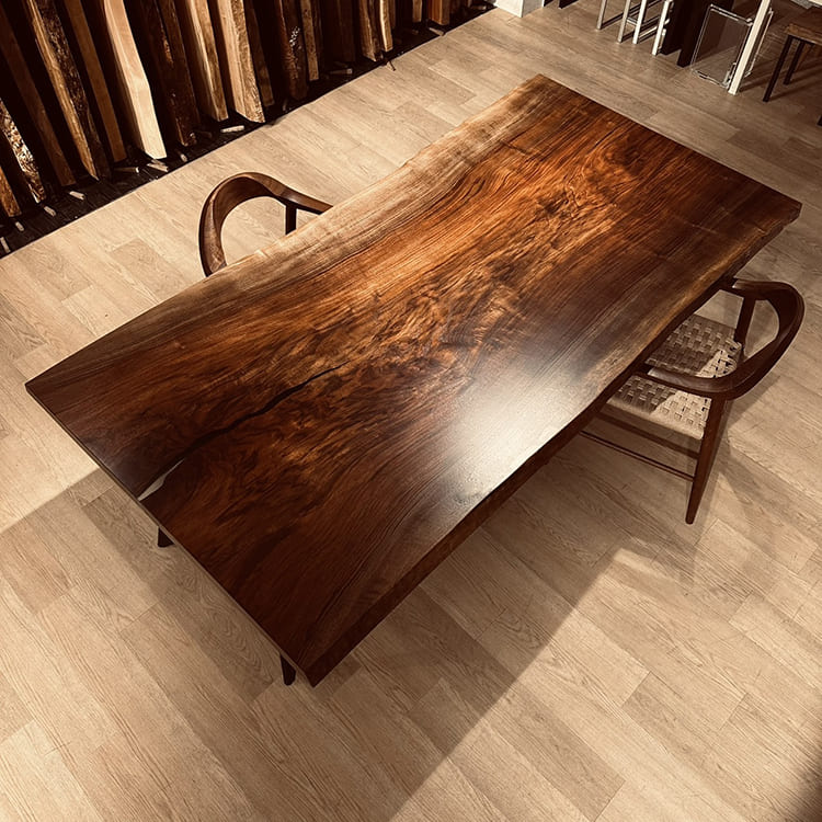 木には人と同じように個性があります。樹種や産地、樹齢はもちろん、同じ丸太から製材した一枚板でも同じものはひとつとしてありません。同じ名前の木でも色の明るいもの、暗いもの、節があるもの、傷があるものなど様々です。それは木が長い年月を過ごしてきた証であり、木が持つ個性です。だからこそ一枚板は‘世界にひとつのモノ’になるのです。