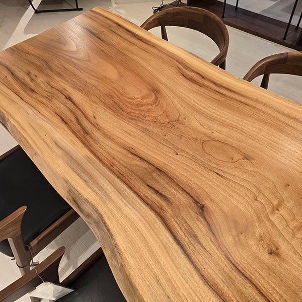 木には人と同じように個性があります。樹種や産地、樹齢はもちろん、同じ丸太から製材した一枚板でも同じものはひとつとしてありません。同じ名前の木でも色の明るいもの、暗いもの、節があるもの、傷があるものなど様々です。それは木が長い年月を過ごしてきた証であり、木が持つ個性です。だからこそ一枚板は‘世界にひとつのモノ’になるのです。
