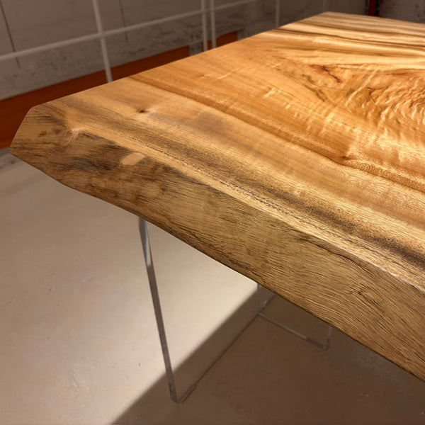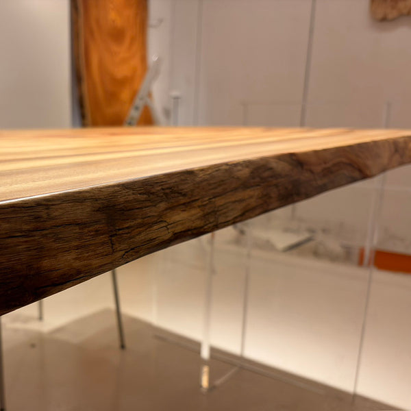 木には人と同じように個性があります。樹種や産地、樹齢はもちろん、同じ丸太から製材した一枚板でも同じものはひとつとしてありません。同じ名前の木でも色の明るいもの、暗いもの、節があるもの、傷があるものなど様々です。それは木が長い年月を過ごしてきた証であり、木が持つ個性です。だからこそ一枚板は‘世界にひとつのモノ’になるのです。