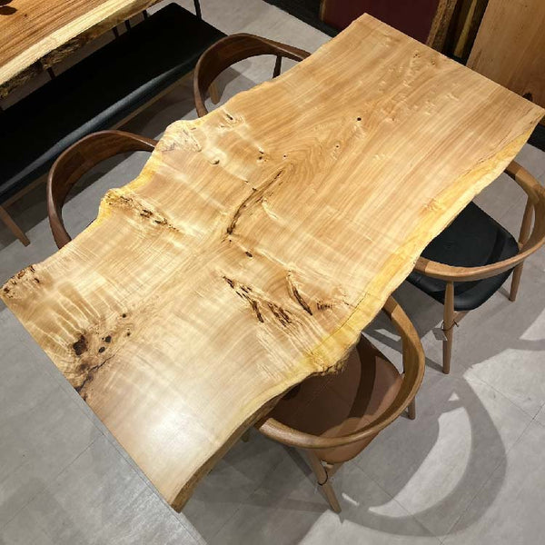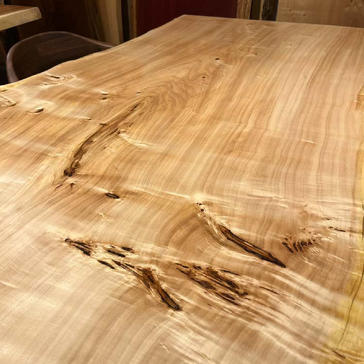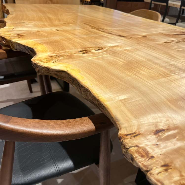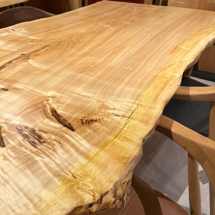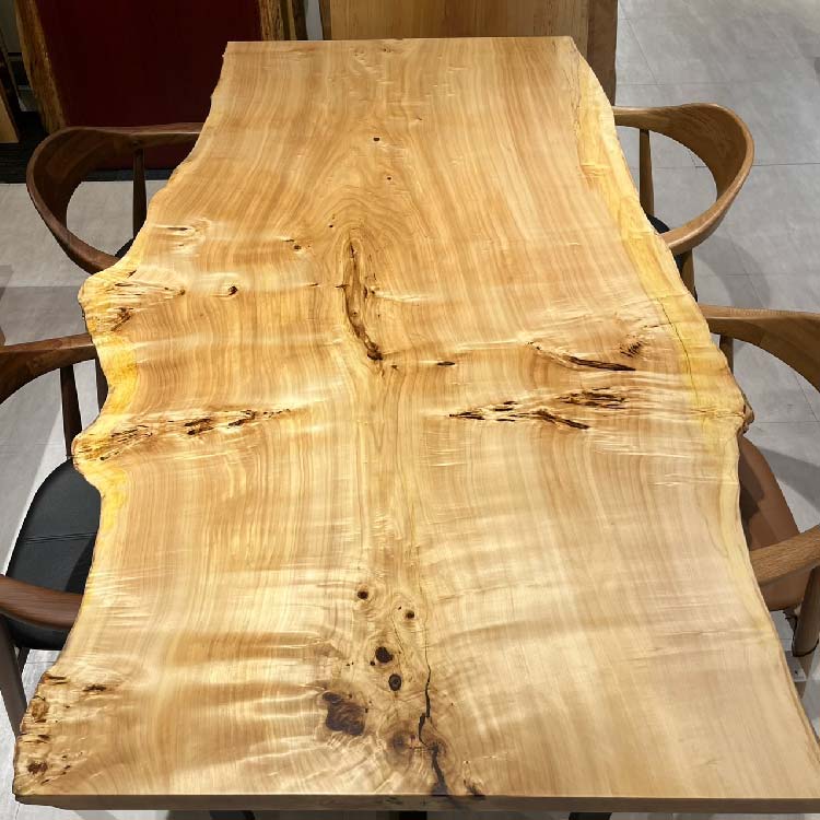 木には人と同じように個性があります。樹種や産地、樹齢はもちろん、同じ丸太から製材した一枚板でも同じものはひとつとしてありません。同じ名前の木でも色の明るいもの、暗いもの、節があるもの、傷があるものなど様々です。それは木が長い年月を過ごしてきた証であり、木が持つ個性です。だからこそ一枚板は‘世界にひとつのモノ’になるのです。