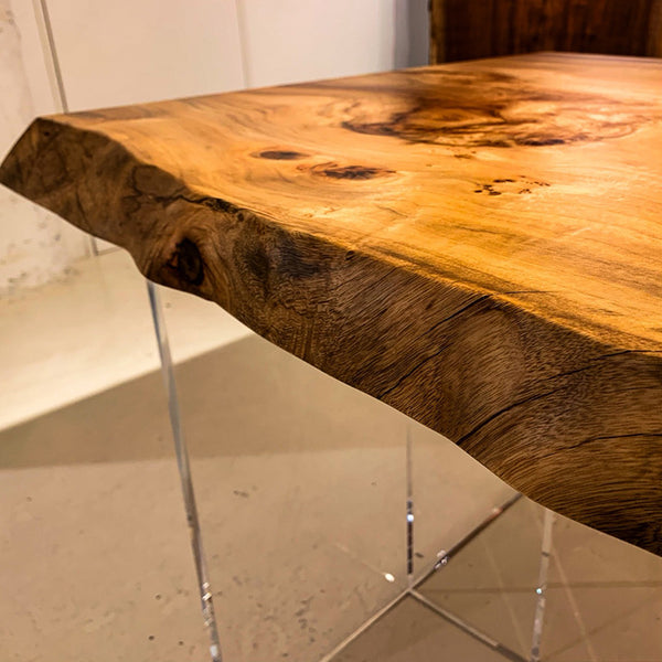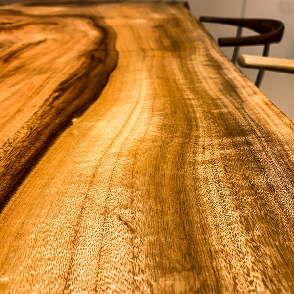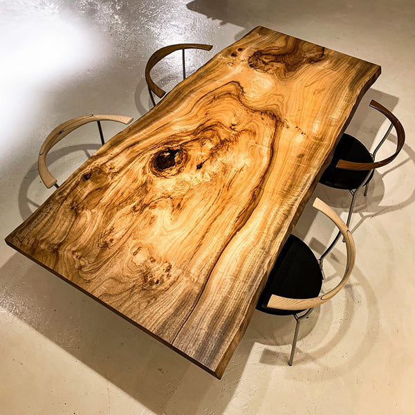 木には人と同じように個性があります。樹種や産地、樹齢はもちろん、同じ丸太から製材した一枚板でも同じものはひとつとしてありません。同じ名前の木でも色の明るいもの、暗いもの、節があるもの、傷があるものなど様々です。それは木が長い年月を過ごしてきた証であり、木が持つ個性です。だからこそ一枚板は‘世界にひとつのモノ’になるのです。