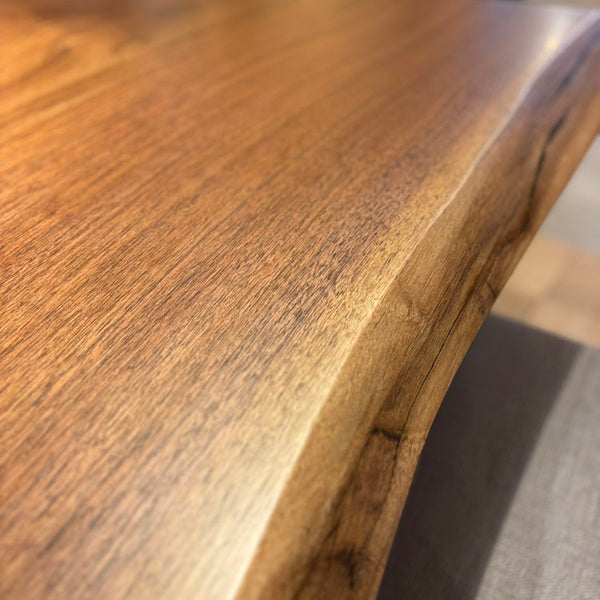 木には人と同じように個性があります。樹種や産地、樹齢はもちろん、同じ丸太から製材した一枚板でも同じものはひとつとしてありません。同じ名前の木でも色の明るいもの、暗いもの、節があるもの、傷があるものなど様々です。それは木が長い年月を過ごしてきた証であり、木が持つ個性です。だからこそ一枚板は‘世界にひとつのモノ’になるのです。
