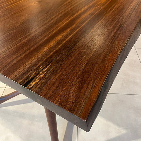木には人と同じように個性があります。樹種や産地、樹齢はもちろん、同じ丸太から製材した一枚板でも同じものはひとつとしてありません。同じ名前の木でも色の明るいもの、暗いもの、節があるもの、傷があるものなど様々です。それは木が長い年月を過ごしてきた証であり、木が持つ個性です。だからこそ一枚板は‘世界にひとつのモノ’になるのです。